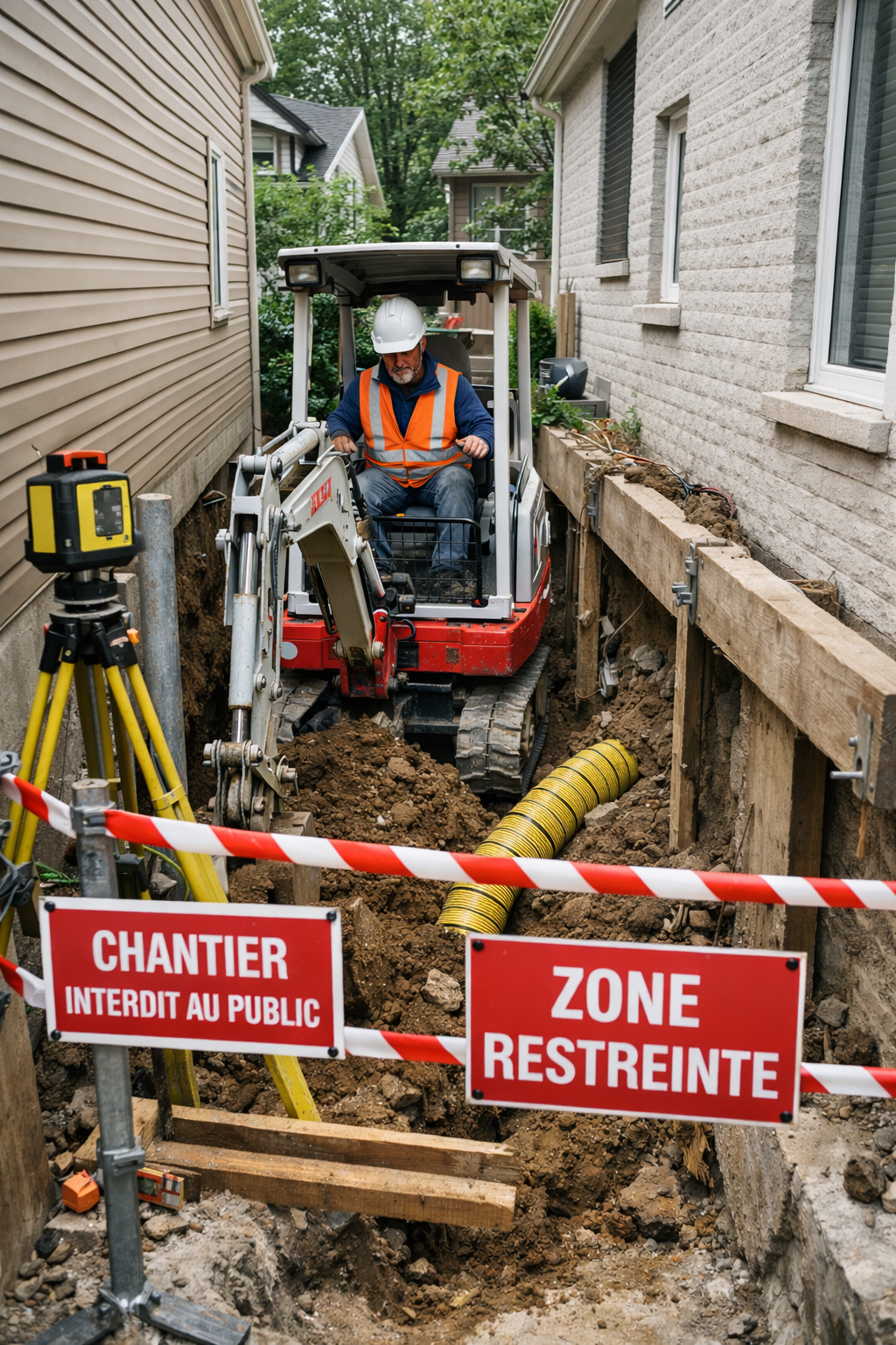 Passionnés par la solidité, nous réalisons des fouilles précises pour vos nouvelles fondations ou la réfection de murs existants, garantissant un sol stable et imperméable. Que ce soit pour une nouvelle construction ou une réparation, notre expertise assure la pérennité de votre bâti à Montmagny et ses environs.